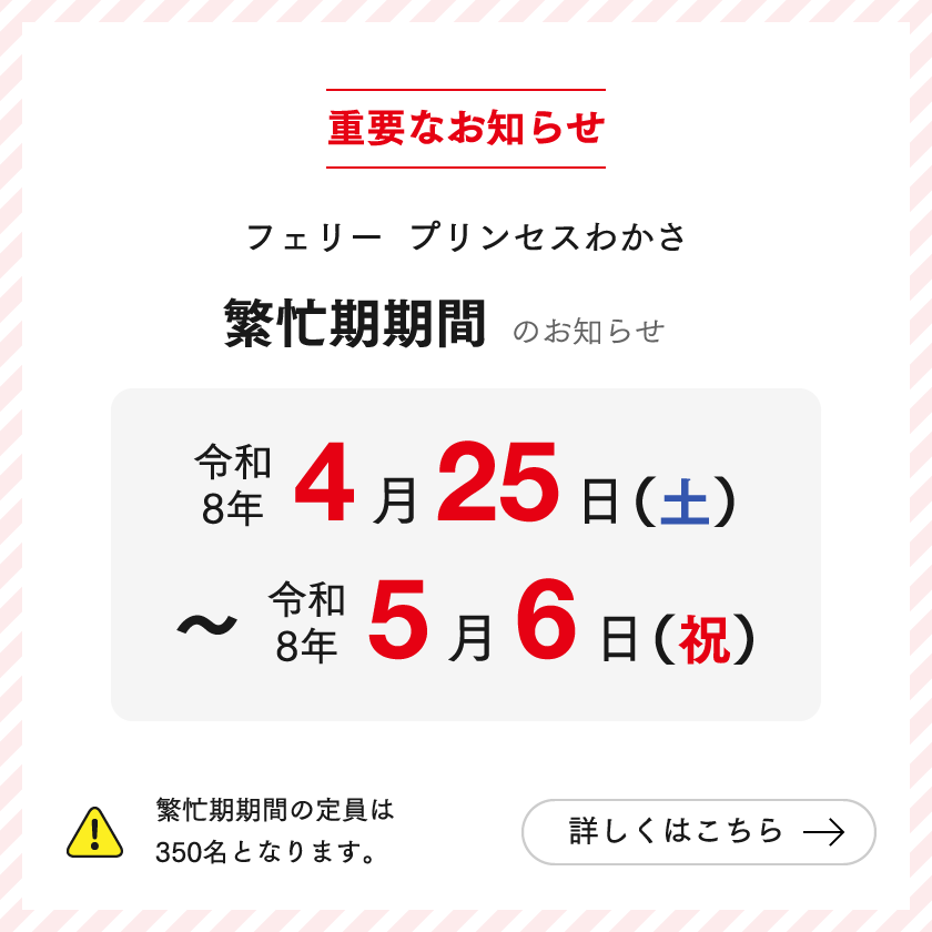 フェリー「プリンセスわかさ」繁忙期のお知らせ